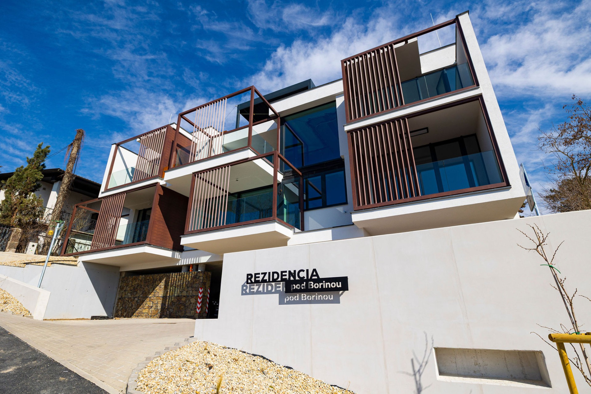 Rezidenčný projekt v susedstve lesoparku Borina. Bytový dom sa skladá z 5 bytových jednotiek, funkčne doplnených o 10 garážových parkovacích miest. Spolu s rekuperáciou, predprípravou na klimatizáciu, elektrickými žalúziami, inteligentným ovládaním nehnuteľnosti a elektronickým vrátnikom, veľkometrážnymi kobkami, bohatým priestorom a súkromím vytvára tento bytový dom vyšší štandard pre náročnejšieho klienta.