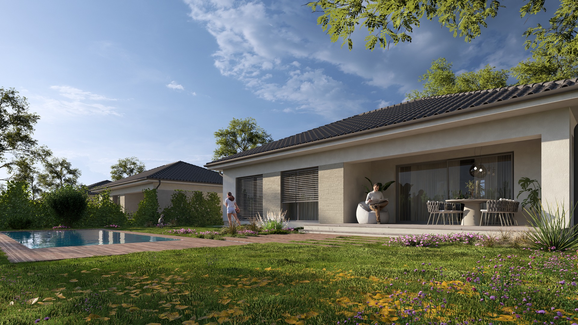 Výhody: Jednopodlažné riešenie prináša prirodzený komfort – žiadne schody, len otvorený, vzdušný priestor, v ktorom má každá izba svoj účel